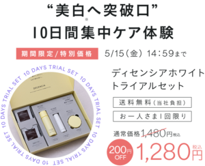 美白美容液を10日間お試しできるトライアルセット「ディセンシアホワイト トライアルセット 1,480円(税込)【期間限定価格】1,280円(税込)」が発売中。